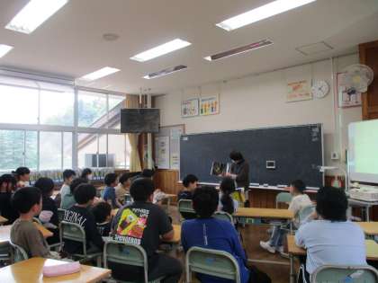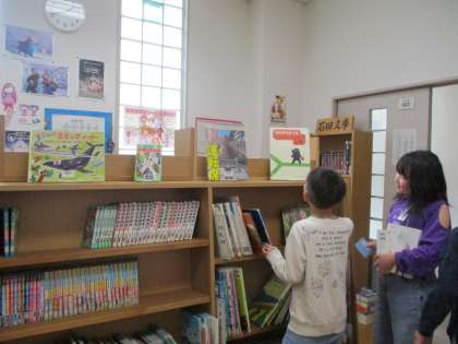 樫尾小学校から受け継いだ本と、八尾小学校にあった本が一緒になった新しい図書室。たくさんの本であふれていて、子供たちはいきいきとした表情を見せていました。