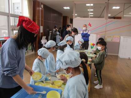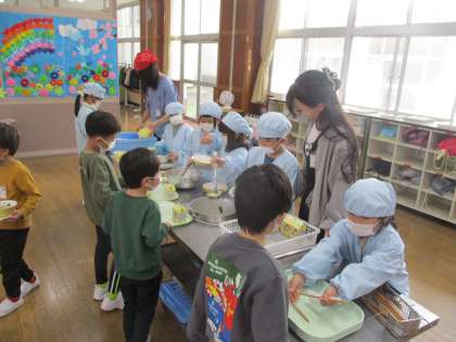 どちらの学級も、3班体制で給食当番のお仕事をしているので、4月が終わり、すべての子供たちが小学校の給食当番を経験しました。
