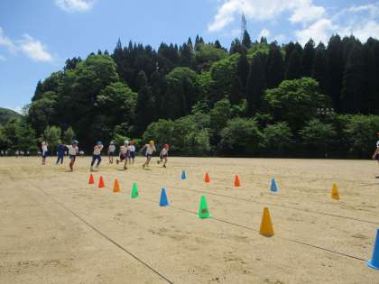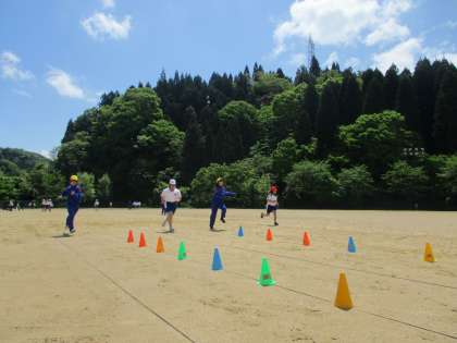 一定の間隔で置かれたマークの間を走るマーク走や、スタートダッシュ、フォームの確認等、自分の課題に応じて練習課題を設定しています。