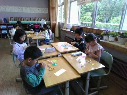 今日は、折り紙を使ってしおりを作りました。読書の時間に活用していきたいですね。
