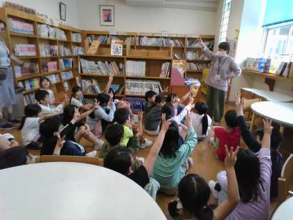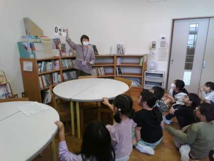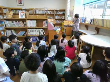 図書室を使うときのルールや、図書室の地図について教えていただきました。読み聞かせもしていただきました。