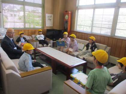 校長室では、校長先生に校長室の秘密を教えてもらい、とても嬉しそうでした。