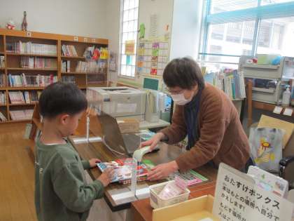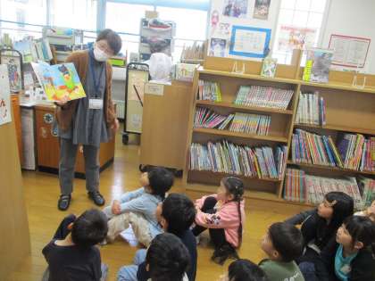 本の借り方や返し方を教わった後、「1ねんせいになったら」の本の読み聞かせをしていただきました。