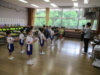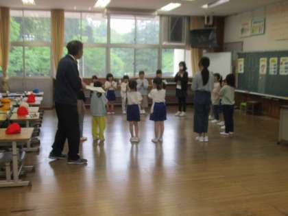6年生の皆さんが指導に来てくれて、そのまねをしながら、動作を覚えました。