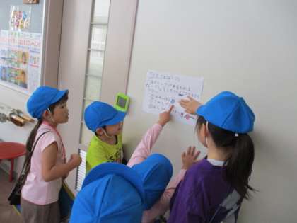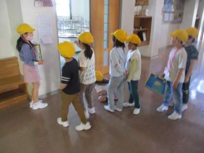 「わくわくおたのしみがっこうたんけん!」を企画し、1年生さんに校内を案内しました。クイズを解きながら楽しく案内していました。また、歩く速さや声のかけ方に気を付けながら、優しく接する姿が見られました。