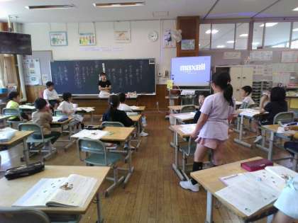 今日の国語では、友達のことを知るために、最近楽しかったことや読んだ本の紹介などをしました。どの子供も、はっきりとみんなに伝わる声で発表することができました。また、質問し、それについて自分の感想も発表しました。