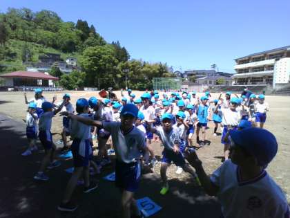 最初は、動きが難しく、なかなか声と動きが揃いませんでした。でも、6年生が丁寧に教えてくれて、それに応えて下級生も一生懸命に練習をし、だいぶ揃うようになりました。