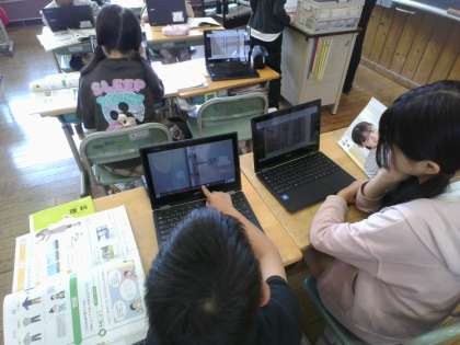 最近の教科書にはQRコードが載っています。クロムブックを使って、そのQRコードを読み取ると、温度計の使い方の動画や資料を見ることができます。
