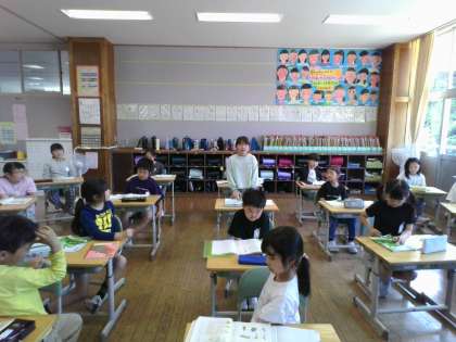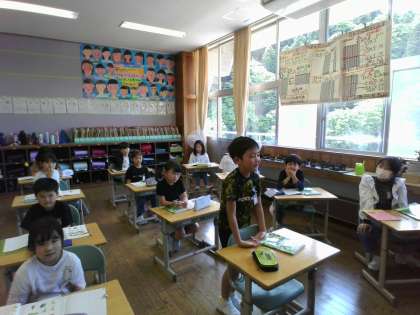 今日は「みどり」の詩を暗誦しました。4月に学習した詩「わかば」は全員が暗誦することができたので、みんな「次もできる!」と熱心に練習しています。