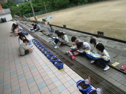 1年生 生活科「わたしのあさがお」の学習の様子から。