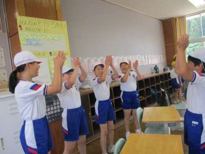 5年生はこれまで、6年生と一緒に朝の時間に応援の練習をしてきました。運動会当日の朝、最後の応援練習の様子です。この日はこれまでの中で一番声が出ていました。各団やる気が伝わってくる練習でした。