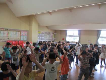 音楽科の学習の時間では、歌を歌うことだけでなく、音楽に合わせて体を動かすことや、リズム遊びをしています。