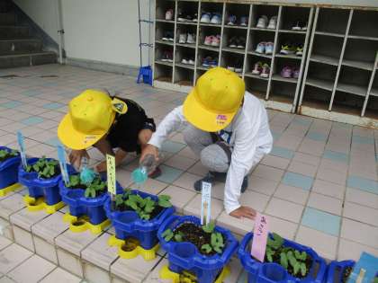 子供たちは、毎朝あさがおの様子を見るのを楽しみにしています。