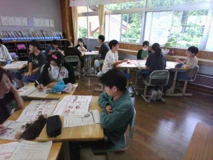 調理実習の計画を立てました。いためる調理に向けて野菜の切り方や調理の手順を確認しました。