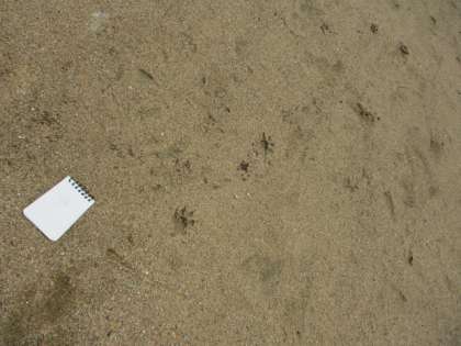 朝、畑に水やりに行くと、なんとグラウンドに動物の足跡が!!