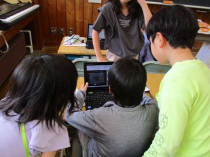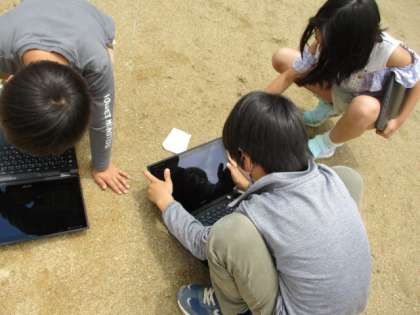 幸い、まだ実のなっていない畑の野菜は大丈夫でした。しかし、このまま野菜を食べられるのではないかと心配になった子供たちは、早速クロムブックで何の動物の足跡かを調べました。おそらく「イノシシ」か「ハクビシン」ではないかとのこと。