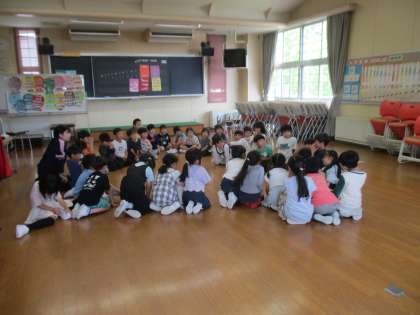 この写真は、先週の金曜日ですが、この日の活動は、リズムに合わせて手を叩く活動を行いました。みんなで輪になり、リズムよく手を叩きながら、次の人を指名するゲーム活動を行いました。