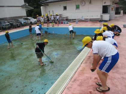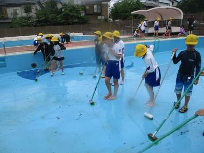 5年生 小プールの清掃