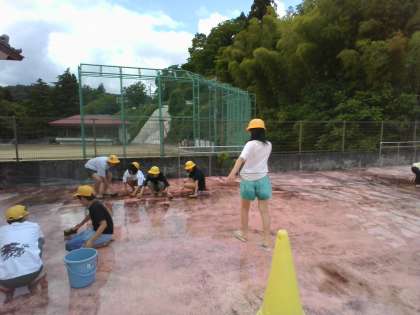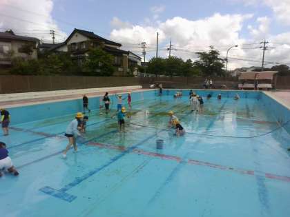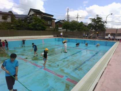 1・2時間目を使って大プールの清掃を行いました。