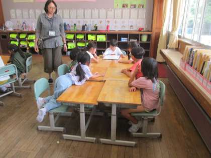 今日はホワイトボードをわたして、グループで意見を一つ書き、提示する活動を試しました。今後、回数を重ねて、意味のあるグループ活動ができるように、学習を積み重ねていきたいと思います。