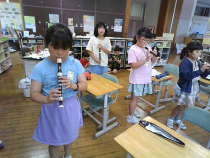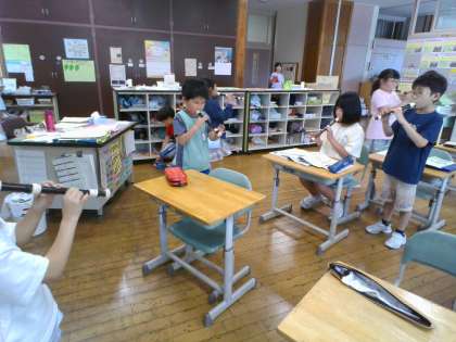 休み時間にリコーダーの練習をしています。1学期の目標は「ㇱ、ラ、ソ」の音をタンギングを意識して吹けることです。中には、家の方に見てもらって、低いド、レ、ミ、ファの音まで出るようになった人もいました!