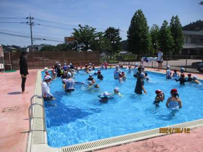 最後には、6年生が小プールで一緒に遊んでくれて、とても楽しく活動することができました。保護者の皆様、準備等、ありがとうございました。次回は、来週の予定です。