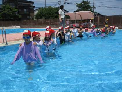待ちに待ったプール開きです。暑い中入るプールは本当に気持ちが良さそうで、笑みがこぼれます。じゃんけん列車を作って楽しみました。