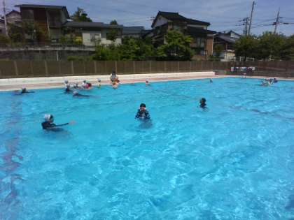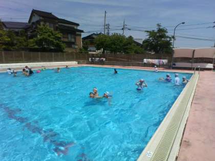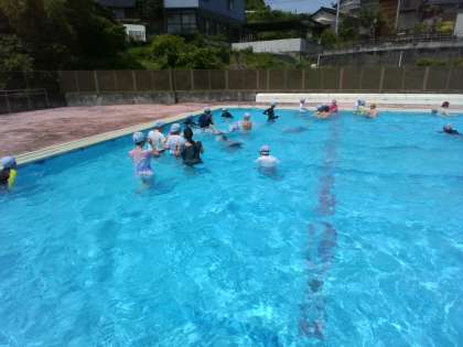 プール開き終了後、早速プールに入りました。とても楽しそうです。