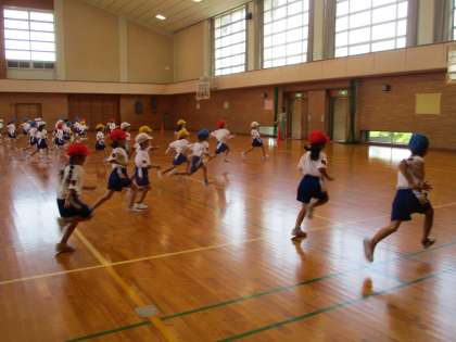 今日は初めてだったので、音をよく聞いて走ることを目標にがんばりました。回数が増えると、音が速くなることを知り、どきどきしている様子でした。