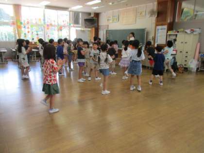 今日はこのあと、「リズムに合わせて」の学習を行いました。