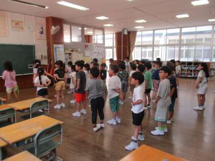 学習活動の前に、必ず体を動かしたり、声を出したりして、「音楽の準備運動」を行っています。いろいろな活動に、一生懸命に取り組む様子がとてもほほえましいです。