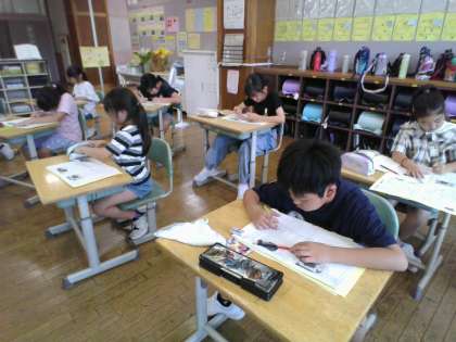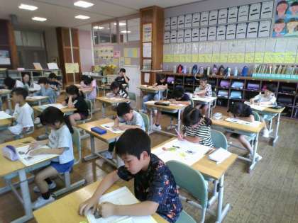 今国語では「まいごのかぎ」という物語文を学習しています。まずは、一人学習として自分で主人公の気持ちが表れる記述に線を引いて、そこから分かる思いを想像して書き込みをしています。みんな、よく集中して熱心に書き込んでいます。素晴らしいですね。