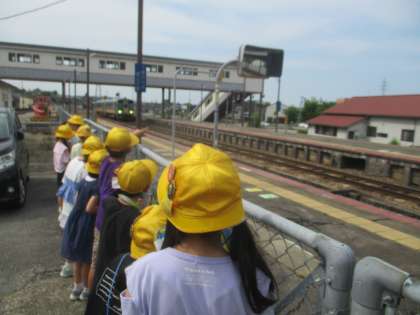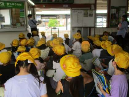 電車を見終わった後には、八尾駅の駅員さんが子供たちの質問に丁寧に答えてくださいました。