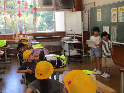 朝の会や帰りの会などで行っている、係活動の様子です。集会係の出し物は、ばくだんゲームでした。みんながやりたい遊びについてアンケートを取ったり、ルールを考えたりして、とても楽しい時間になりました。