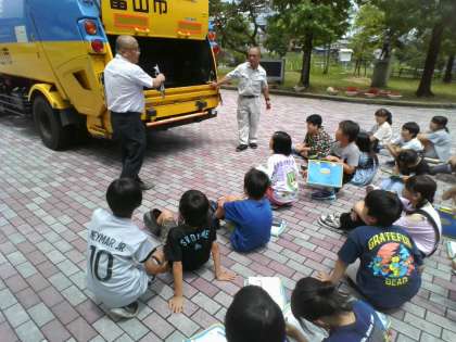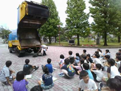 ゴミを圧縮するところや、クリーンセンターで中のゴミを外に出すときの動きなどを見せていただきました。その迫力に圧倒されました!