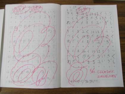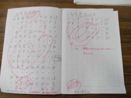 そのため、主にひらがな練習に取り組んだ子供たちが多かったのですが、日付や時間、何をしたかや振り返りまでしっかりと記入できている立派な取組があり、さっそく学級で紹介したところ、素早くお友達のよさを取り入れてがんばってきた子供たちがいました。