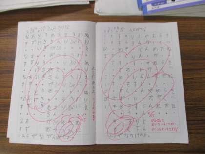 今回は「八尾っ子検定(今回はひらがな検定)に向けて」を意識して、最初のページに、みんなで練習プリントで間違えた字を書き、その練習をしてみました。
