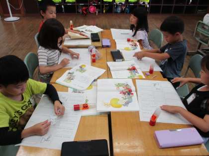 国語科の時間では、物語文「おおきなかぶ」の学習をしています。今までの教材文に比べて長いお話ですが、上手に音読できるようになってきています。