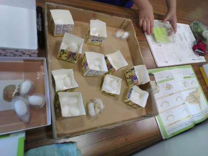 昨日交尾していたメスの蚕がたくさん卵を生みました。そして、他の繭も次々と成虫になっていきました。