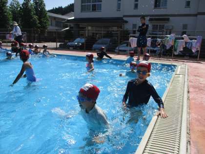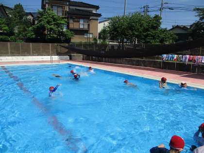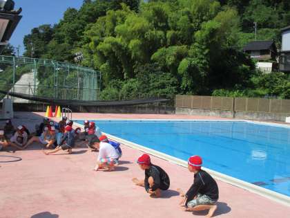 雨が続いていて、1週間ぶりの水泳学習でした。子供たちは、久しぶりのプールに大喜びでした。