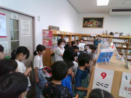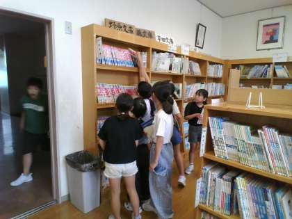 今日は、夏休み中の本を5冊借りました。好きな本が2,3さつ、頑張る本が2,3冊入るように選びました。そして、読み物の本も入れるようにしました。本を読む習慣がつくとよいですね。
