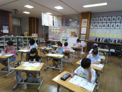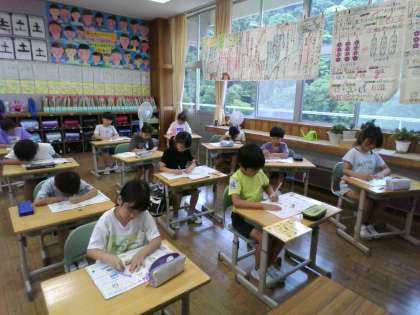 ローマ字の練習に取り組んでいます。ローマ字も漢字も、よい姿勢で練習に取り組めるようになってきています。
