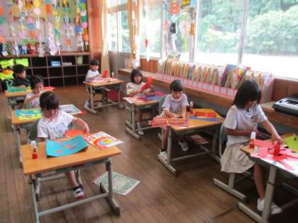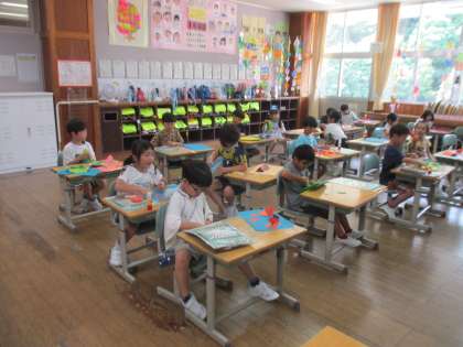 「紙を折ったら、立たせることができる」ことを利用して、紙工作を行いました。