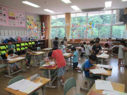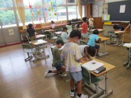 これまでの学習で書いたワークシートを互いに見合い、友達のよさをできるだけ具体的に付箋に記入して貼る、という活動です。そろそろできるかな…?と思い、本日チャレンジしてみましたが、子供たちがとても熱心に取り組んでくれました。付箋付きの作品は、本日家庭に持ち帰っていますので、よろしければご覧になってください。