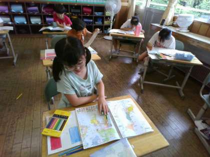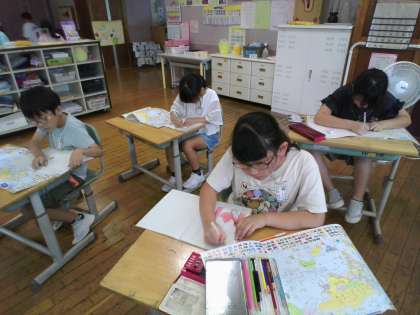 もうすぐパリオリンピックが開催されます。そこで今日の社会では、いろいろな国の国旗を調べました。パリオリンピック中、話題に上がった国々の場所を地図帳で調べたり、国旗を見付けたりして、世界の国々のことに親しめたらいいですね。