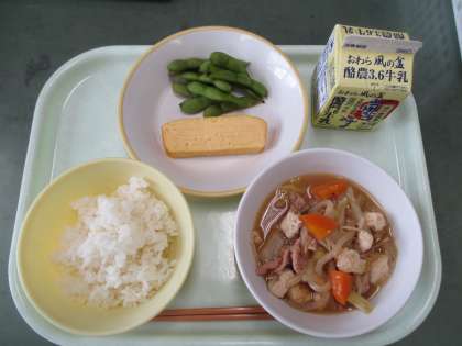 今日の枝豆は、射水市産黒大豆枝豆「富山ブラック」でした。流通量の少ない「たんくろう」という品種を使用しています。甘みが強くコクがあるのが特長です。茹で方も塩加減もちょうど良く、地元のおいしい野菜をいただくことができました。