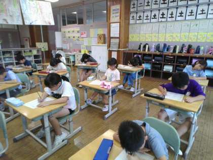 「あまりのあるわり算」では、説明でき理解したあとは、スキルを高める必要があります。8分間で何問解けるか挑戦してみました。みんな集中して取り組んでいました。たくさん練習して、「正確に」「速く」解けるようになるといいですね。