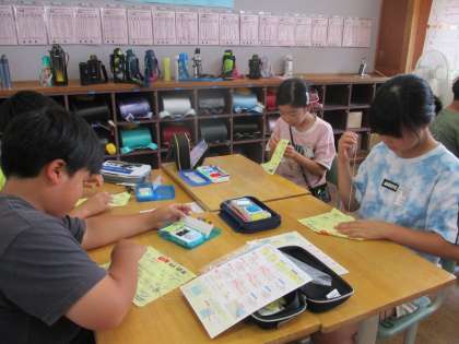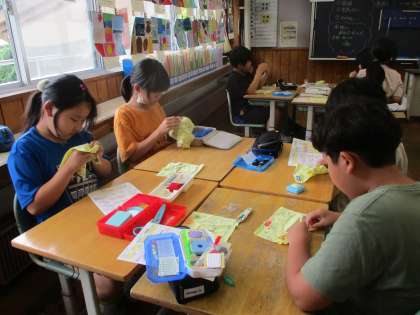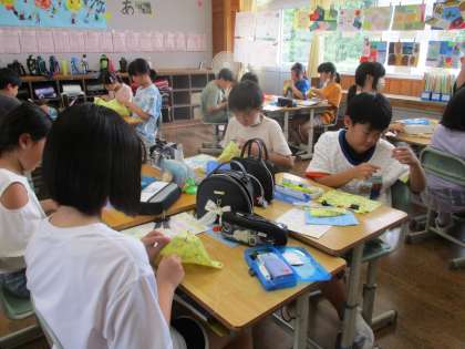 家庭科の学習では裁縫に取り組んでいます。一つ一つ丁寧に縫っていきました。