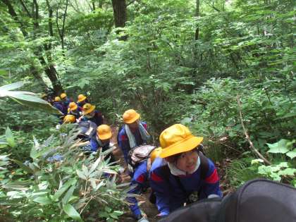 次は来拝山登山です。仲間と声をかけ合いながら登りました。
