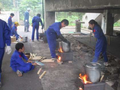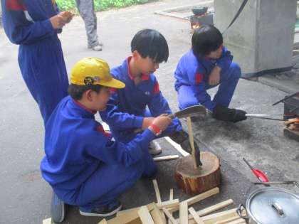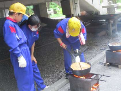 缶かまどを使ってご飯を炊いたり、カレーを煮たりしました。水加減が難しいようでした。